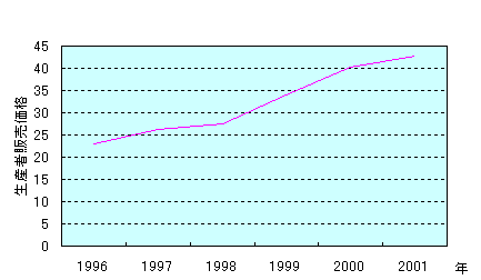 ブラジルでは、生体取引が主体であるが、生産者販売価格は、15キログラム単 位で枝肉の建値を決める。2001年の生産者販売価格(サンパウロ州)は、前年比 6.5%高の15キログラム当たり42.79レアル(約1,800円)となった。