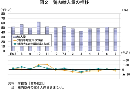 なお、過去5カ年の7月の平均輸入量との比較では、0.3%増と同水準となった。