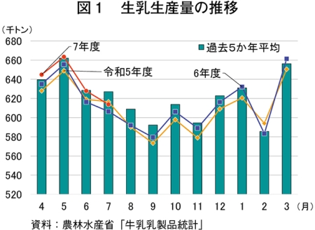 全国の牛乳生産量、3カ月ぶりに前年同月を上回る