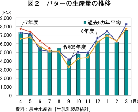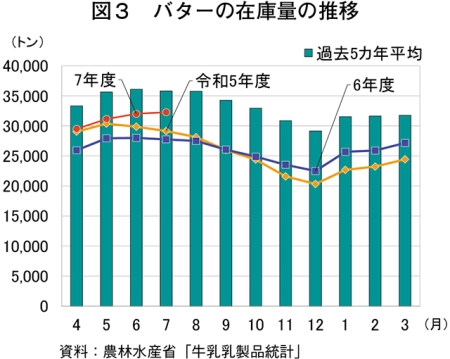 7月のバター在庫量、前年同月比16.3%増