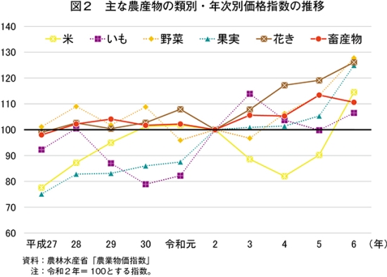 農林水産省が令和7年7月30日に公表した「令和6年農業物価指数―令和2年基準―」について、概要を以下の通り報告する。