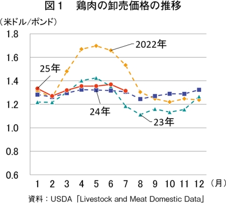 25年7月の鶏肉卸売価格、前年同月比0.6%高