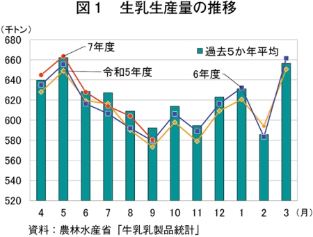 全国の牛乳生産量、前年同月比0.3%減