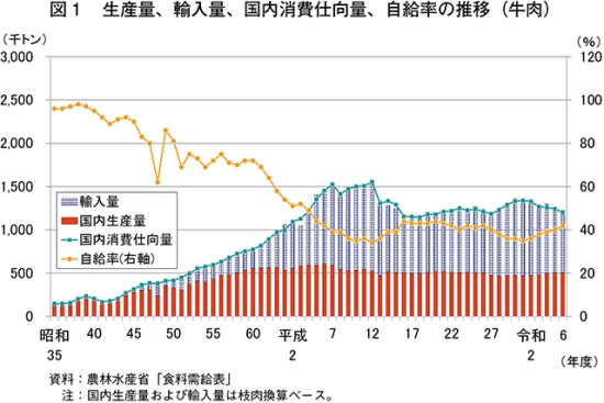令和6年度の牛肉自給率、前年度から2ポイント上昇の42%