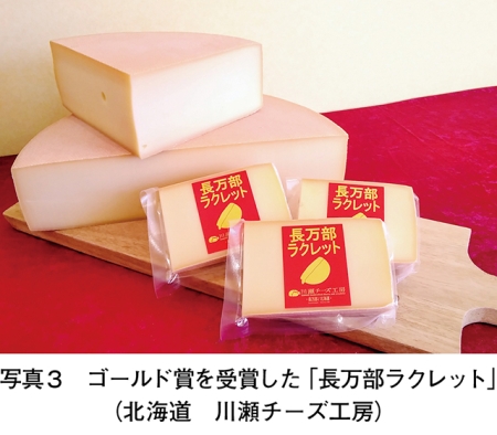 また、22品のうち3品がゴールド賞を獲得し、このうち養沢ヤギ牧場チーズ工房(東京都)が出品した「養沢ヤギチーズ」と、チーズ工房乳ぃーずの物語。(広島県)が出品した「雪子」の2品がスーパーゴールド賞を受賞した(写真1、2)。さらに「養沢ヤギチーズ」は、この大会で日本のチーズ最高順位である14位となり、BEST JAPANESE CHEESE賞に選ばれた。