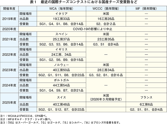 第37回目となる2025年の出品数は、世界46カ国から5244品と過去最大規模となった。日本からは40工房48品が出品され、22品が表彰(注1)されるなど、チーズの本場の欧州においても高い評価を受けている。