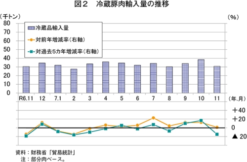 なお、過去5カ年の11月の平均輸入量との比較では、冷蔵品は14.9%減とかなり大きく、冷凍品は17.5%減と大幅に、いずれも下回る結果となった。