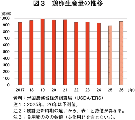 一方で、USDAは、25年7月公表予定としていたワクチン戦略を発表していないなど、進捗は不透明となっている。この背景について、国際貿易ルールとの調整、監視体制の構築、業界間の合意形成などさまざま対応が必要となることが考えられる。また、輸出に関するワクチン接種国の扱いが国単位で決定される中、輸出仕向け割合のより大きい鶏肉産業(注16)との横並びの難しさを指摘する声もある。米国におけるワクチンの検討はまだ計画の初期段階とされており、導入には相当の期間を要すると見込まれている。