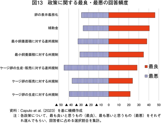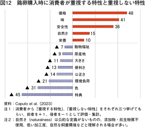 (注15)ケージ、ケージフリー、エンリッチドケージの三つの飼養形態について、AW、食品安全・品質、環境、労働者の健康・安全、価格の手頃さという五つの指標から比較分析を行っている。