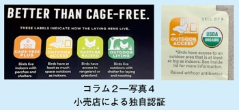 (注13)巣箱ではなく床面で産卵された卵。ふん便による汚染リスクなどから、米国では原則として殻付き卵(Grade A)として販売することはできず、加工用または廃棄処理の対象となる。