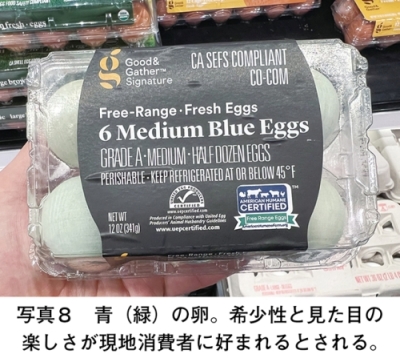 なお、つつきやいじめの防止策として、ロードアイランドレッドなどブラウン系の気性が穏やかな品種の選別や、育種改良の動きも一部見られるものの、白色レグホーンなどの従来種の方が生産性に優れることもあり、小売店でも両者は併存している(写真7)。