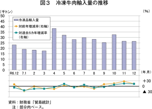 なお、過去5カ年の12月の平均輸入量との比較では、冷蔵品は8.6%減とかなりの程度下回った一方、冷凍品は13.1%増とかなり大きく上回る結果となった。