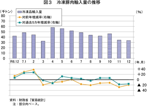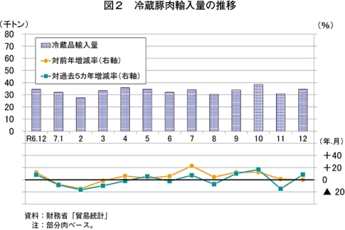 なお、過去5カ年の12月の平均輸入量との比較では、冷蔵品は8.6%増とかなりの程度上回った一方、冷凍品は15.6%減とかなり大きく下回る結果となった。