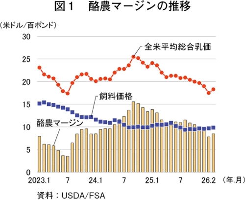 26年2月の全米平均総合乳価、前年同月比22.5%安