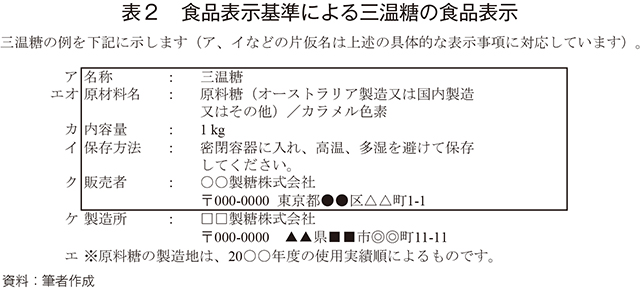 (2)製造地の異なる原料糖の使用順位が年間で変動するかもしれないため、「又は表示」としています。