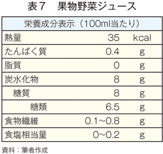 「砂糖不使用」や「糖類無添加」の無添加強調表示は、本項に示した四つの条件を満たしている場合に表示ができます。栄養成分表示を見ると、糖類が6.5gと表示されていますが、これは原材料となっている果実や野菜などにもともと含まれているもので、砂糖などの糖類を添加した(後から加えた)わけではありませんので、このケースでは「砂糖不使用」と表示できます。