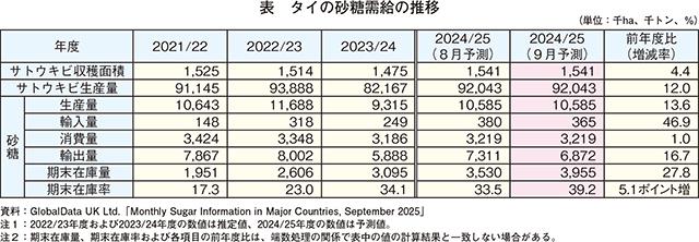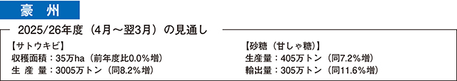 2025/26年度の砂糖生産量はかなりの程度、輸出量はかなり大きく増加する見込み