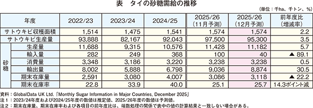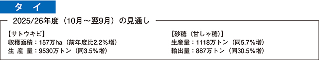 2025/26年度の砂糖生産量および輸出量はわずかな増加見込み