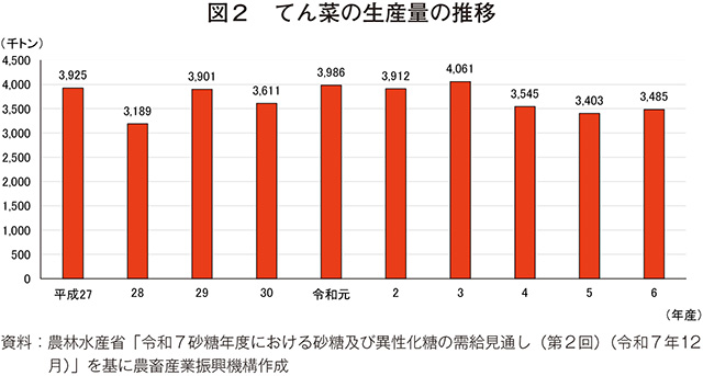 ・農林水産省「令和7砂糖年度における砂糖及び異性化糖の需給見通し(第1回)」令和7年12月版〈https://www.maff.go.jp/j/seisan/tokusan/kansho/satou.html〉