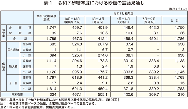 ホーム > 砂糖 > 砂糖・異性化糖の国内需給 > 砂糖の国内需給