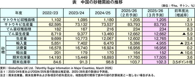 2025/26年度の砂糖生産量はかなりの程度増加見込み