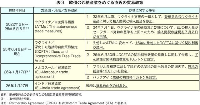 EUでは、排出量取引制度(EU ETS:EU Emissions Trading System)により、EU域内のGHG排出量上限を設定するとともに、排出枠を市場で取引することが可能となっている。CEFSは、同制度の排出権取引により発生した収益が必ずしも収益の貢献者となった産業の脱炭素化に還元されていない現状を批判している。現在、てん菜生産を含む農業部門は同制度の対象外であるが、欧州委員会は将来的な適用の可能性を示唆している。CEFSは、生産者側の反発などを踏まえ、農業部門への導入は困難であると見つつも、規制見直しが続く26年の動向を注視している。