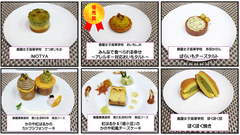他にも、昨年から始まった高校生のスイーツコンテストが今年も開催されました。地元の高校生によるサツマイモを使用したスイーツ6点の出品があり、審査の結果、「みんなで食べられる幸せ〜アレルギー対応おいもタルト〜」が優秀賞に選ばれました。