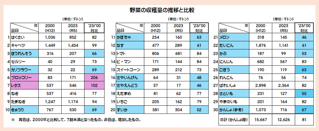 野菜統計要覧は、ベジ探の「野菜統計要覧」ページで公開していますのでぜひご利用ください。