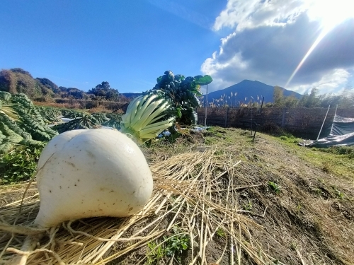 この大きなかぶのような形をした桜島だいこんは、桜島の噴火による火山灰土が、この桜島だいこんにならしめたと言われており、産地特有のだいこんです。