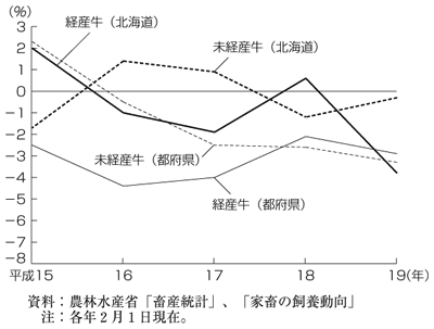 図2 経産牛と未経産牛の飼養頭数の推移 (対前年増減率) |