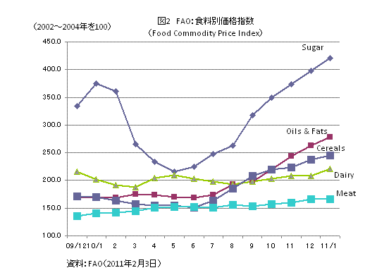 注:FAOの食料価格指数(Food Price Index)は、小麦、トウモロコシ、