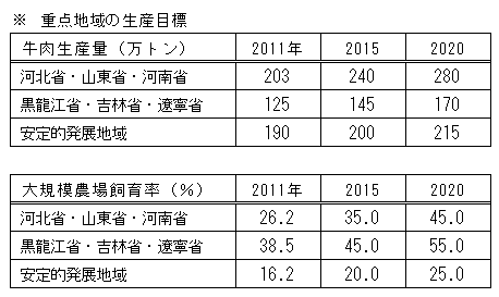 (5) 産業化経営の推進: 牛羊屠殺加工業界の大規模化・標準化・ブランド化(中心的企業を強大化。屠殺加工、品質検査の施設・装備条件の改善など)。生産・加工・販売の連携強化(生体取引市場の構築・規範化、加工配送、冷蔵冷凍、コールドチェーン輸送等の市場流通施設の建設、流通段階の改善による流通コストの抑制など)、など。