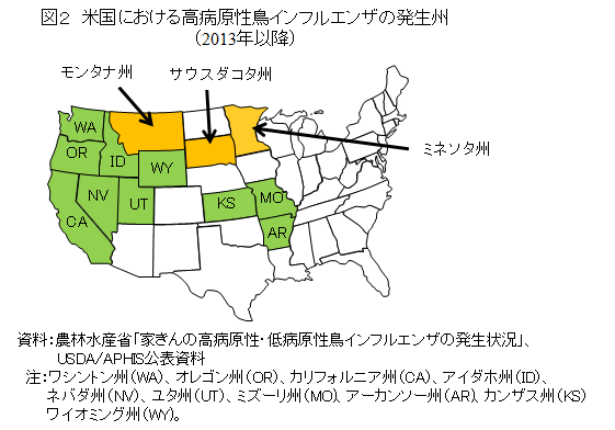 なお、日本は、今回の発生を受けて、4月7日、同州からの生きた家きんおよび家きん肉等の輸入停止措置を講じている。