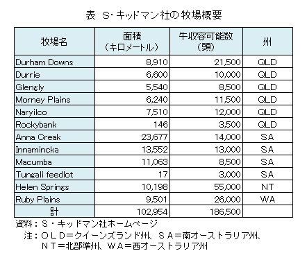 S・キッドマン社は10万平方キロメートル以上の土地を有しており、その広さは国土面積の1.3%(総農地面積の2%)に相当する(表)。同社の買収については、昨年4月に同社の創業家が売却の方針を示して以来、中国企業2社が名乗りを上げていた。しかし、同社の所有地のうち南オーストラリア州のアナクリーク牧場は、その半分が兵器実験場の立ち入り制限区域内に位置しており、モリソン財務相は昨年の11月に、「安全保障上問題がある」ことから買収を認めなかった経緯がある。