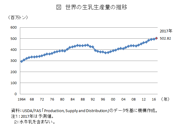 2017年の世界の生乳生産量は前年を1.7%上回る見通し