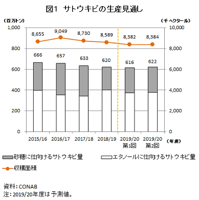 ブラジル国家食糧供給公社(CONAB)は8月22日、2019/20年度(4月〜翌3月)第2回サトウキビ生産状況等調査結果を公表した。同調査は、同年度におけるサトウキビ、砂糖およびエタノールの生産予測を年4回公表するものである。