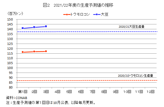 2021/22年度主要穀物の生産状況等の調査結果(第3回)を公表(ブラジル)