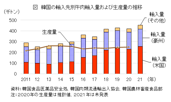 韓国では、2003年の米国でのBSE発生後、長年、豪州が最大の輸入先となっていたものの、2012年に発効した米韓FTAの追い風もあり、米国からの輸入量は大幅に増加し、現在では最大の輸入先となっている。