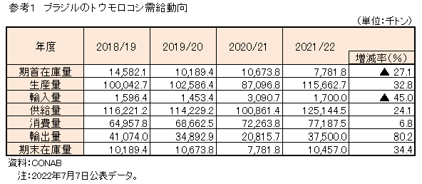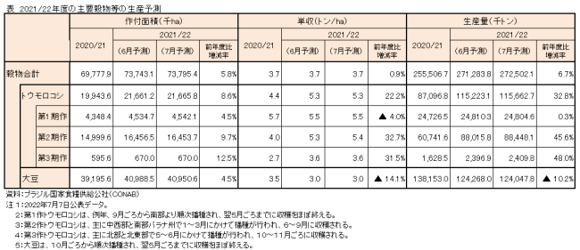 2021/22年度主要穀物の生産状況等の調査結果(第10回)を公表 (ブラジル)