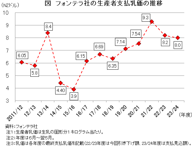 また、同社は同日、23/24年度の当初乳価を同8.0NZドル(692円)とすると発表した。