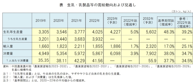 中国農業展望報告(2023−2032)を発表(牛乳・乳製品編) (中国)