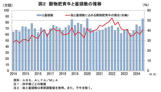 豪州フィードロット協会(ALFA)と豪州食肉家畜生産者事業団(MLA)は2024年11月15日、四半期ごとに共同で実施している全国フィードロット飼養動向調査の結果 (24年7〜9月期)を公表した。