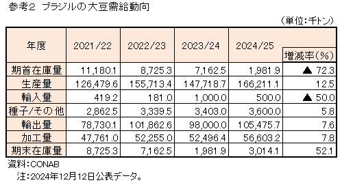 2024/25年度主要穀物の生産状況等の調査結果(第3回)を公表 (ブラジル)