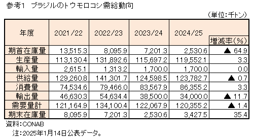 2024/25年度主要穀物の生産状況等の調査結果(第4回)を公表 (ブラジル)