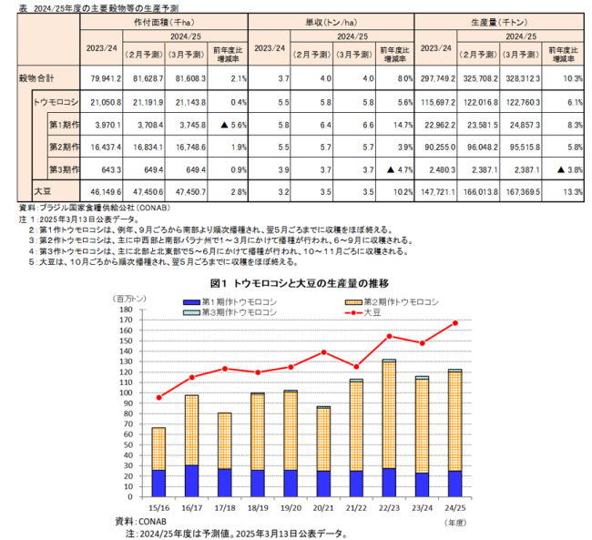 2024/25年度主要穀物の生産状況等の調査結果(第6回)を公表 (ブラジル)
