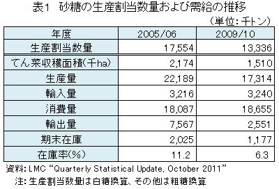砂糖類情報2011年6月号需給レポート「EUにおける最近の砂糖需給動向」)。