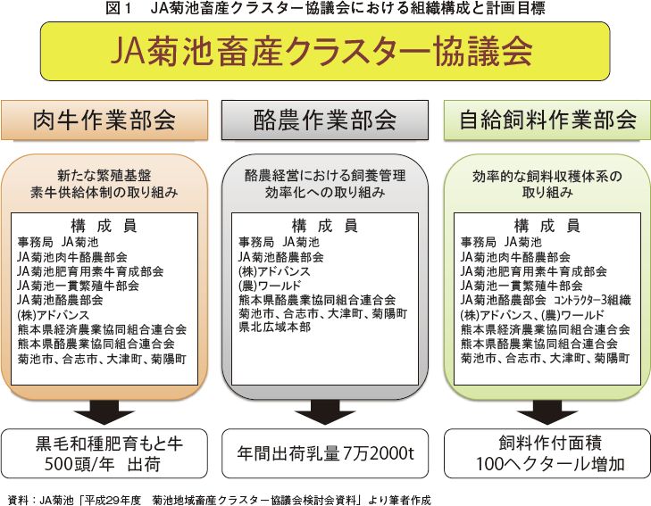 JA菊池管内は、県内肥育牛生産の40%を占める一大肥育地帯である。しかし、肥育もと牛の一部は他県に依存する現状にある。先述したように、肥育もと牛は全国的に不足している。当該地域においても同様であり、この数年、繁殖雌牛の飼養頭数の減少により、子牛価格は急騰し、肥育農家の経営を圧迫している。