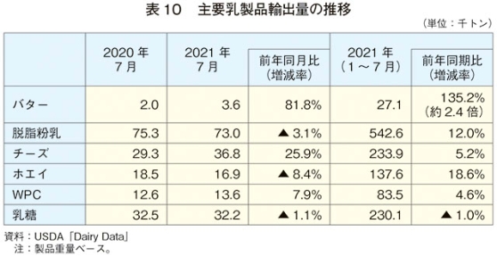 2021年7月の乳製品輸出量は、世界経済の回復と米ドル安を背景に比較的好調に推移した。