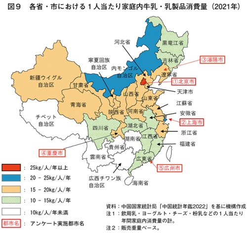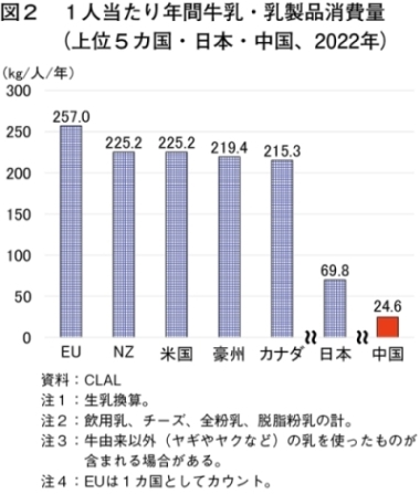 (注8)中国の低温殺菌乳は60〜90度殺菌であるので、日本の低温殺菌乳(63〜65度殺菌)とは定義が異なる。本稿中では中国の定義に基づいて使用する。