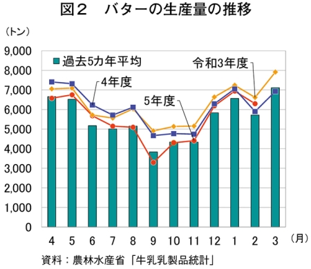 乳製品のうち、クリームは9914トン(同7.9%増)と前年同月をかなりの程度上回った。